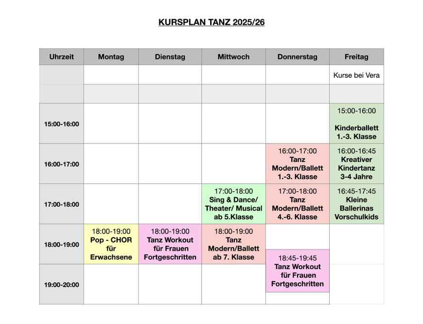 In dem unten aufgeführten Plan, sehen Sie alle derzeit stattfindenden Kurse, die Zeiten!
